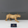 Make a breathtaking statement with the Regal Gold Leopard Glass-Top Console Table. This avant-garde piece features a life-size, prowling leopard sculpture as its base, supporting a sleek oval glass surface. Combining the raw power of the jungle with a high-fashion metallic finish, this table is designed for those who want their home decor to reflect a bold, fearless sense of style.